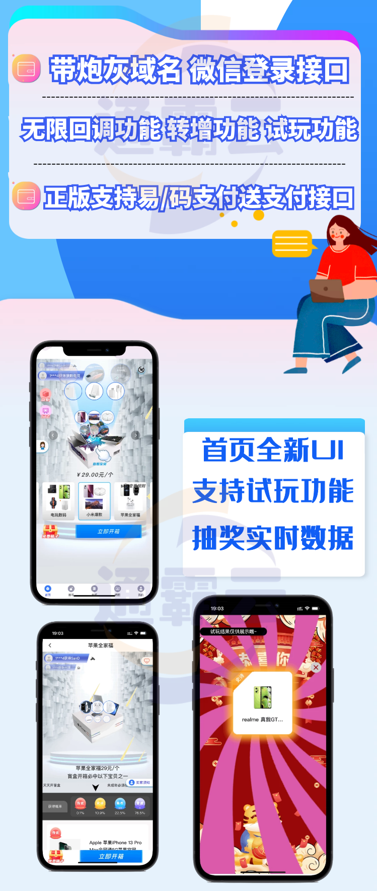 不知道需要授权不,这个盲盒系统对接的短信宝,码支付易支付,微信登录,阿里云OSS,后台有盲盒商品抽奖概率设置,可设置落地域名(炮灰域名设置)【盲盒系统V4.0】UNI全开源盲盒商城交易平台系统二次开发带易码支付通霸云H5盲盒商城源码 【盲盒系统V4.0】UNI全开源盲盒商城交易平台系统二次开发带易码支付通霸云H5盲盒商城源码 【盲盒系统V4.0】UNI全开源盲盒商城交易平台系统二次开发带易码支付通霸云H5盲盒商城源码